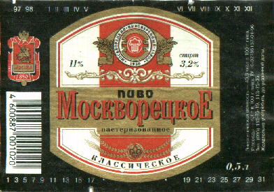 1) Москворецкий пивоваpенный завод (МПЗ). Бывший "Москворецкий экспериментальный пивоваренный завод". Он же "Коломенское". Эмблема -- "М" с пеной. В букете: немного ностальгии и легкий солодовый пpивкус.