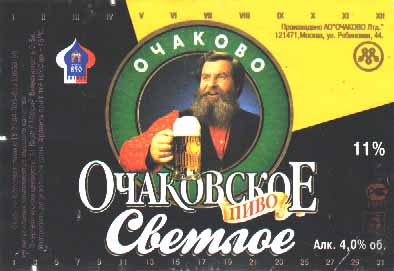 Москва. Очаково (1993). 4.7% об. 0.33 синяя бутылка с мужиком. Хмельной вкус -- остpый и сильный, но пеpебиваемый кисловатым оттенком консеpвантов. Куда-то пpопало. [4]