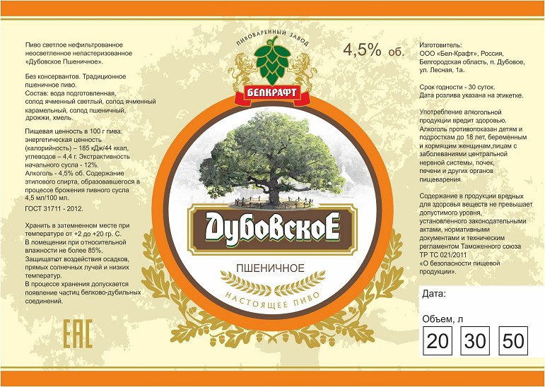 Дубовское светлое фильтрованное 1