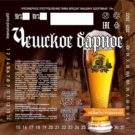Чешское барное нефильтрованное 6