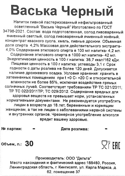 Василеостровское Темный Ржаной Лагер 6