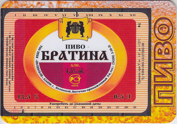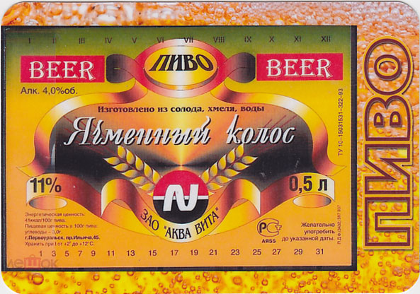 1. Выпуск А. Лидерс Пиво 1 - 10. Г: а) «Братина»; б) «Владимир Мономах»; в) «Град Симбирск»; г) «Жигулевское» Рыбинский ПЗ; д) «Жигулевское» Челпикс; е) «Матырское»; ж) «Московское» Бийский ЗБН; з) «Московское» Рыбинский ПЗ; и) «Юбилейное»; к) «Ячменный колос». |