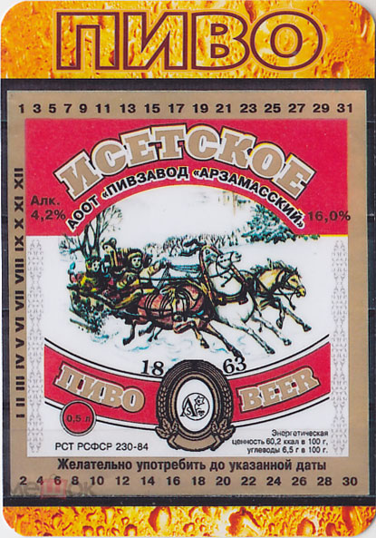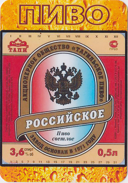 2. Выпуск А. Лидерс Пиво 1 - 12. В. а) «Донское казачье»; б) «Исетское»; в) «Металлург»; г) «Наша марка»; д) «Балтика»; е) «Охота»; ж) «Конкорд»; з) «Салют, златоглавая»; и) «Форт»; к) «Российское»; л) «Усть-Илимское»; м) «Ключи». |