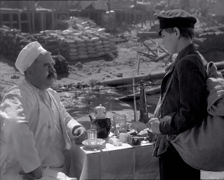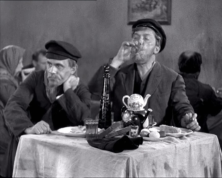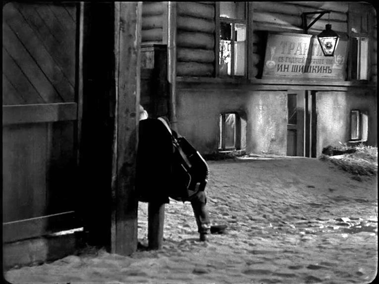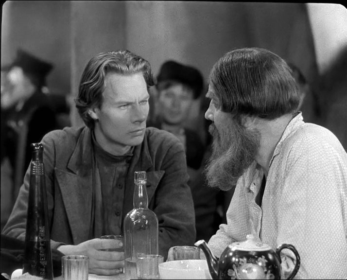 | "Детство Горького" - черно-белый полнометражный художественный фильм по первой повести из автобиографической трилогии Максима Горького. Режиссер - Марк Донской, снят на киностудии "Союздетфильм", вышел на экраны 18-го июня 1938-го года. Роль Алеши Пешкова - единственная работа в кино Алексея Лярского (он погиб на фронте 8-го февраля 1943-го года). Дело происходит в Нижнем Новгороде, в середине 70-х годов XIX-го века. В первой части трилогии из околопивного можно только видеть Трактиръ "с подачей горячего чаю" И. Н. Шишкина. О И. Н. Шишкине ничего сказать не могу, возможно владелец трактира относится к известной купеческой семье Шишкиных из Елабуги. | ||||||||||||||||||||||||||||||
