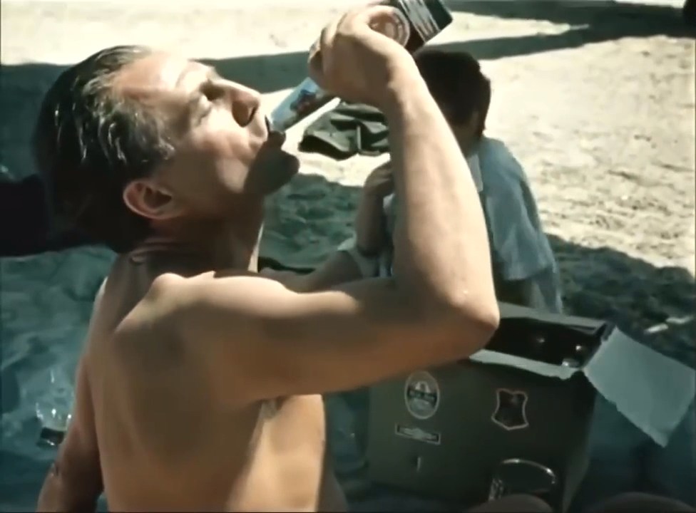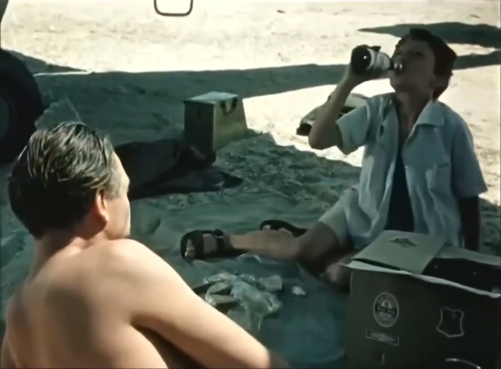 | "Последний дюйм" - цветной художественный приключенческий фильм-драма, снятый на киностудии "Ленфильм" в 1958-м году режиссерами Теодором Вульфовичем и Никитой Курихиным по одноименному рассказу Джеймса Олдриджа (этот рассказ был впервые опубликован именно на русском языке в 1957-м году). В главных ролях Слава Муратов и Николай Крюков. Действие происходит в послевоенные годы, на побережье Северной Африки. По роману - это тогда еще малоизвестная рыбацкая деревушка под названием Хургада. Снимали же - на Каспийском море, в городе Баку, в том числе на аэродроме в поселке Бина (будущий бакинский аэропорт Бина, ныне им. Гейдара Алиева). Главный герой, бывший военный летчик, захватив с собой сына (10-11-ти лет) отправляется на съемки акул. Летят они на самолете Taylorcraft Auster, в фильме использован подобный ему советский самолет Як-12. В качестве пития он захватил с собой только дюжину пива (так как не хотел сначала брать сына с собой), потому в фильме присутствует такой диалог: - а ты что будешь пить? - придется пиво, воды то нет. - что же ты мне не напомнил... Пиво мальчику совсем не зашло - глотнул и выплюнул, а пьется немецкое пиво Beck's. "Beck's" - марка пива, производимого компанией Brauerei Beck & GmbH в Германии из города Бремен. Пивоваренный завод был основан 27-го июня 1873-го года под названием Kaiserbrauerei Beck & May o. H. G. Людером Рутенбергом, Генрихом Беком и Томасом Маем. Это пиво активно поставлялось на экспорт и самые сложные времена для него были во время мировых войн. С 1945-го по 1948-ой год пивоварня не работала, но в 1950-х годах импорт (а значит и производство пива) - опять наладились. С 2002-го года компания принадлежит международному концерну Interbrew (AB InBev). На бутылках хорошо видна контрэтикетка в виде красного ключа - фактически, это герб города Бремена только наклоненный в противоположном направлении. |
