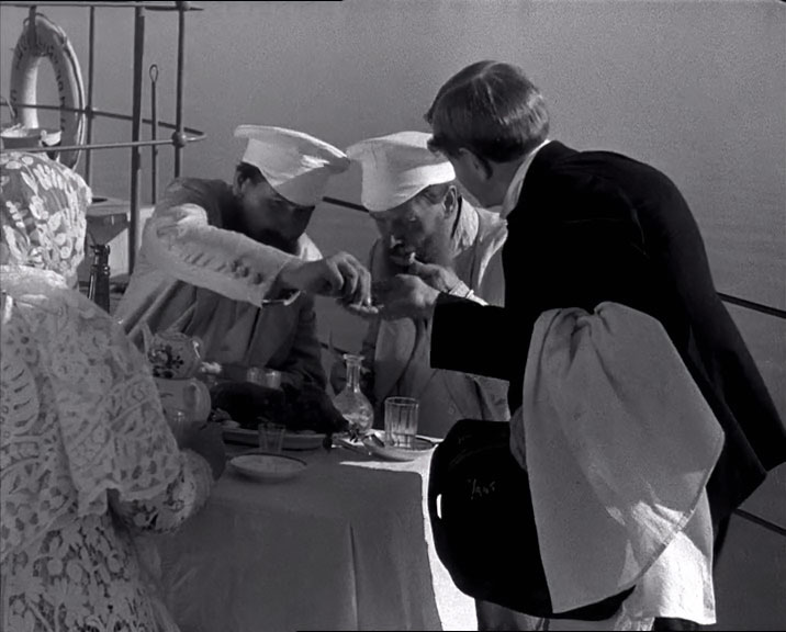 | "В людях" - черно-белый полнометражный художественный фильм режиссера Марка Донского снятый на киностудии "Союздетфильм". Экранизация второй части автобиографической трилогии Максима Горького. Выход на экран состоялся 31-го марта 1939-го года. Во второй части трилогии пиво в кадре появляется неоднократно. Во-первых, на колесном пароходе "Добрый", где пиво пьет повар на палубе, в каюте у него тоже стоят пивные бутылки, пивная кружка ну и непременный чайник. Пьют пиво и пассажиры на верхней палубе. Бутылки - скорее всего московского Трехгорного завода, отчетливо это видно в следующей сцене, но реквизит был явно один. Пивная кружка - цилиндрическая и похоже граненая. | ||||||||||||||||||||||||||||||