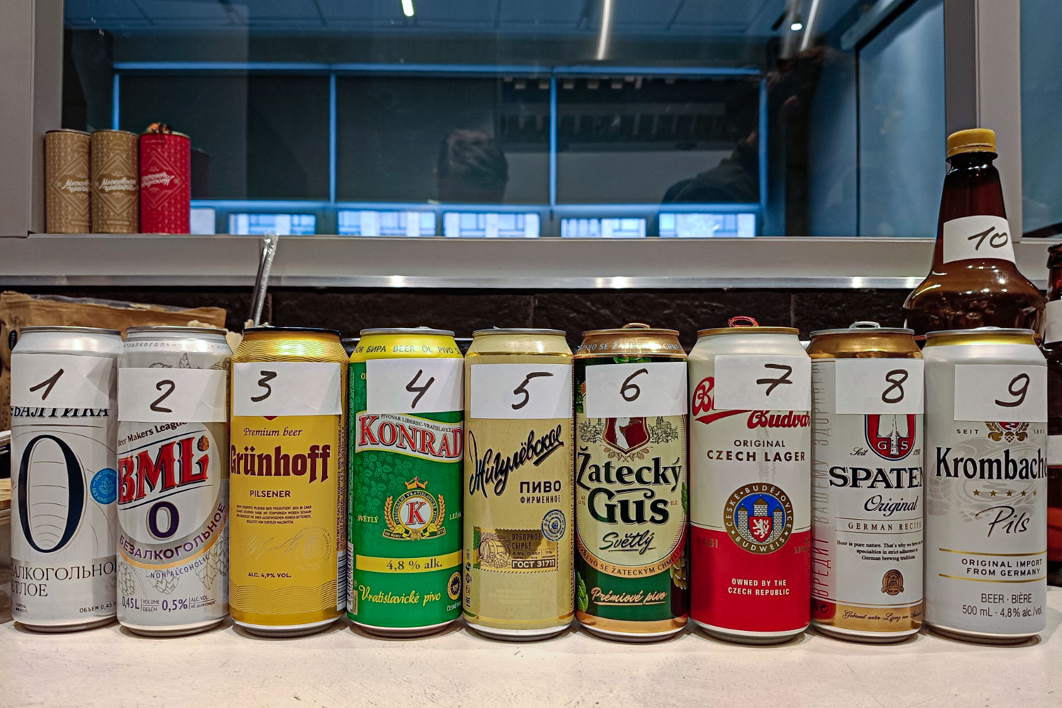 | Вторая дегустация проходила в школе вина "Энотрия", по заказу одной из сетей ("Чижик"). В таких дегустациях обычно присутствуют массовые сорта которые сеть или продает, или собирается продавать. Хотя это уже не удивляет, но результаты иногда удивляют. Так в этот раз очень понравился сорт, которые показался мне отличным пилснером, а оказался российским "Шпатеном". Китайские сорта были легко опознаны по своему уж слишком пустому вкусу, а бланши от "Балтики" были тоже узнаны по очень яркому персиковому вкусу. И приведу отдельно только две баночки - у меня их не было и они пошли в коллекцию - это пиво от бывшего завода "Браво", потом ставшим "Объединенными пивоварнями Хейнекен", потом "Объединенными пивоварнями - Холдинг", а сейчас компания переименовалась в "Бочкарев". Это банка "Охоты крепкой" - выпущенной к 25-ти летию сорта. За это время плотность постепенно снижали с 19% до 16,8%, крепость тоже снижали с 8,5% до 8%, хотя потом чуть приподняли до 8,1%. Вообще - это пожалуй лучшее пиво в стиле стронг лагера - чистое, полное, солодовое, с умеренным спиртом. Второй же сорт, наоборот - безалкогольный и это - "БМЛ (Безалкогольное)". BML (Beer Makers League) это СТМ бренд сети Чижик. Варится он на "Белом Кремле", "Трехсосенском" (в Ульяновске), а сейчас вот и на "Бочкареве" (вернее - данная банка сварена и розлита на филиале "Волга" в Нижнем-Новгороде, там же сварена и "Охота"). И пиво вполне неплохое, конечно превалирует вкус невыброженного пивного сусла, но не столь явно и немного сбалансированного хмелем. | ||||||||||||||||||||||||||||||