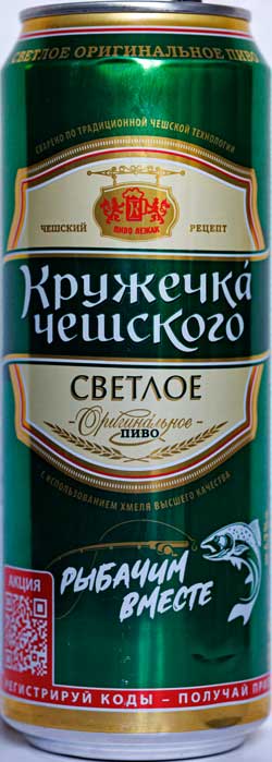 | "Московская Пивоваренная Компания", банка "Кружечка чешского" с акцией "Рыбачим вместе". Чисто, пусто, питко. Новый сорт - "Пироговское, Живое" - в литровом ПЭТе, этикетка в виде листа бумаги обернута вокруг бутылки. В общем - это такая же "Кружечка чешского" но вид с боку - непастеризованное. Вкус чистый, довольно пустой и малоохмеленный. Наконец, "Жигули барное" - на этикетке в очередной раз что-то поменяли в надписях, хотя общий дизайн - не изменен. Здесь тоже все очень чисто, но и солод ощущается лучше и хмель солод балансирует, так что вкус пополней и поплотней. |
