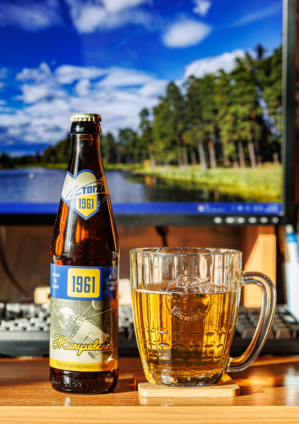 Если "Балтику №1" прислали на пробу раньше, чем увидел ее в продаже в магазине, то про сорт "Как тогда Жигулевское 1961" уже писал ранее, потому как купил его в сети "Красное & Белое", но воронежцы тоже не забывают, прислали ящик чтобы распробовать получше ;-) . Но могу только повториться, конечно это не "Жигулевское", а вполне современный легкий лагер, чистый и хотя хорошо выброженный - со сластинкой, однако это придает пиву более полный вкус и при 10% плотности - водянистым не кажется. Только пена - довольно слабая.