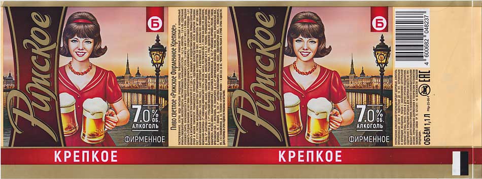 "Рижское, фирменное крепкое" - плотность 14,2%, а крепость - целых 7% алкоголя. В общем - вполне полный, солодовый вкус с небольшими винными тонами, конечно хотелось бы крепость ближе к 5%, ну или хотя бы к 6%, но в общем и 7% алкоголя не сильно давит. Сварены оба сорта - на Тульском филиале.