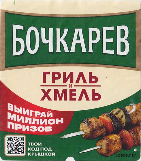"Объединенные пивоварни - Холдинг" - всерьез взялись за тему шашлыков и кроме акции на этикетках бренда "Бочкарев", даже выпусти целый сорт под это - "Бочкарев, гриль и хмель". По параметрам и вкусу похоже на "Бочкарев, живой розлив", может чуть сильнее выброженный, но тоже чистый, малоохмеленный.
