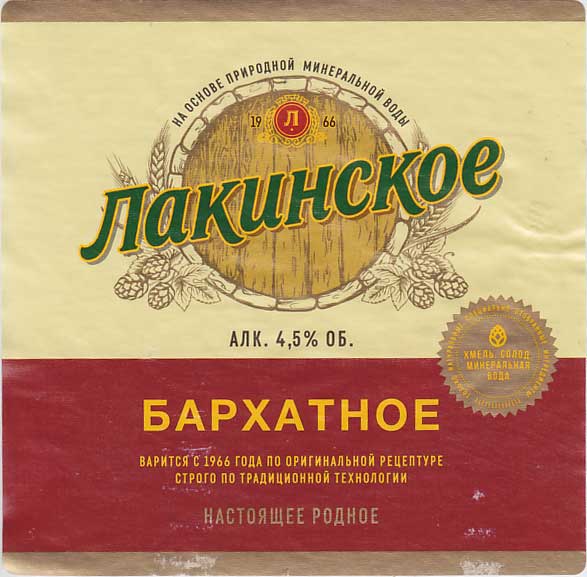 "Лакинское, бархатное" - вполне себе чистое темное пиво с вкусом темных и карамельных солодов, даже есть чуть жженки, но довольно бархатной на вкус. Покупал в "Авоське", со скидкой будет - 90 р.