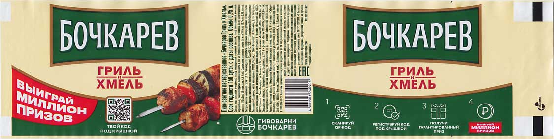 | "Объединенные пивоварни - Холдинг" - продолжают окучивать шашлычную тему и выпустили даже новый сорт - "Бочкарев, под шашлык". Параметры - удивительные для крупного завода - 13% плотности на 4,7% алкоголя ("Балтика" в "Московском", при такой плотности меньше 5,8% сделать не смогла). Однако по вкусу этого не скажешь, не ощущается полнота, пиво кажется вполне обычным массовым легким лагерком, в бутылочной версии - довольно чистым, а вот в ПЭТе есть легкая посторонка, все таки ПЭТ как тара, тем более когда они прозрачные, на сохранность влияют не лучшим образом. | ||||||||||||||||||||||||||||||||||||
