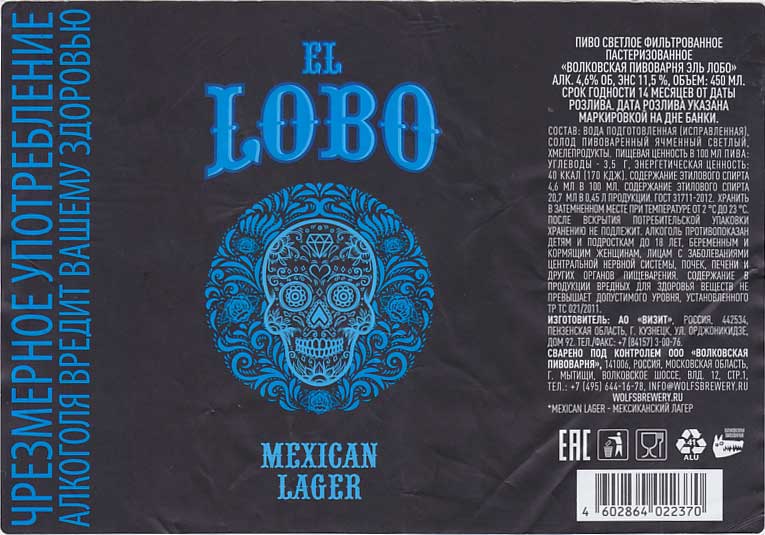 Волковская пивоварня, Эль Лобо (Lager Mexican) |