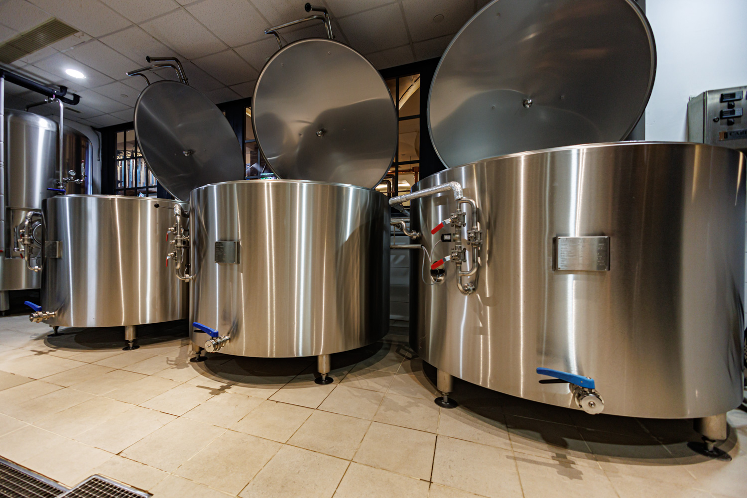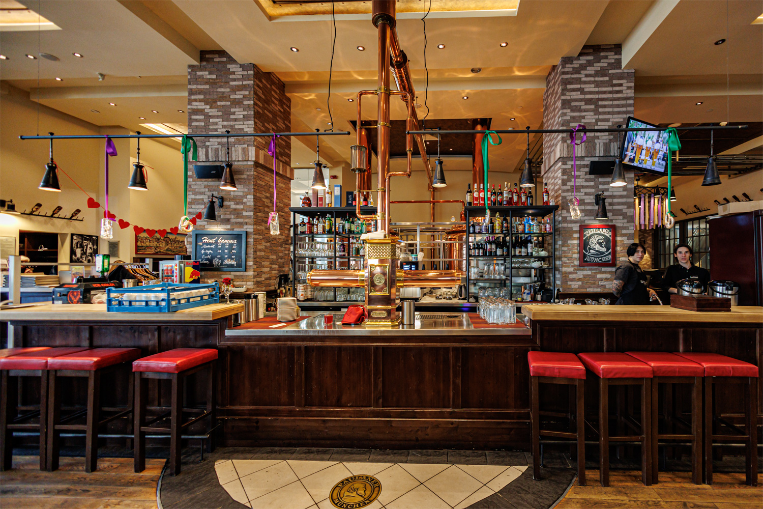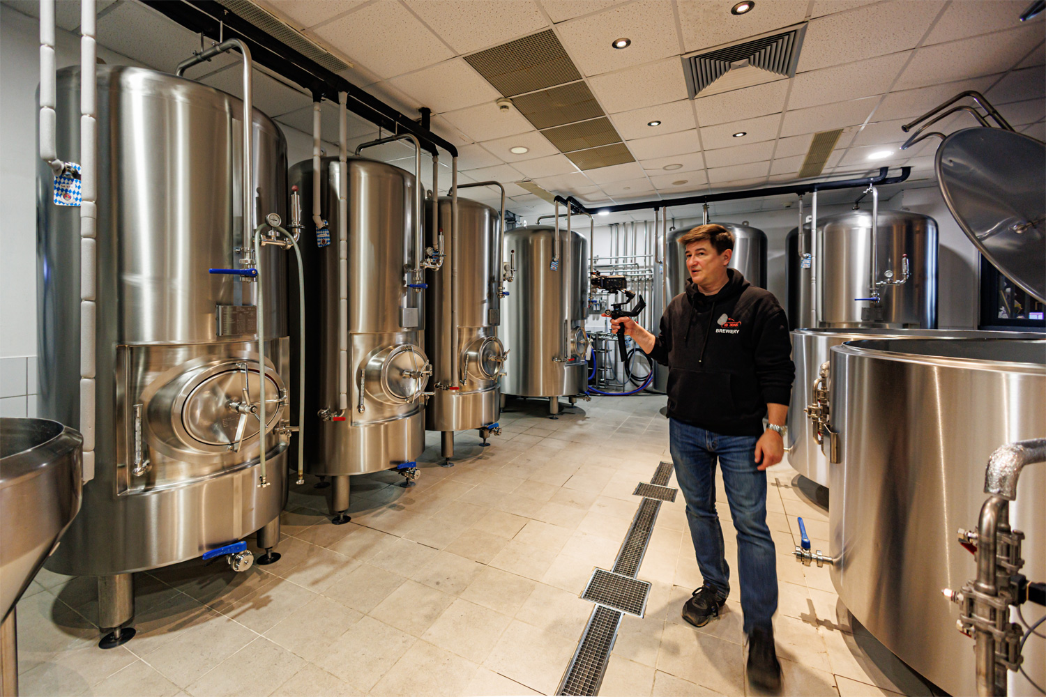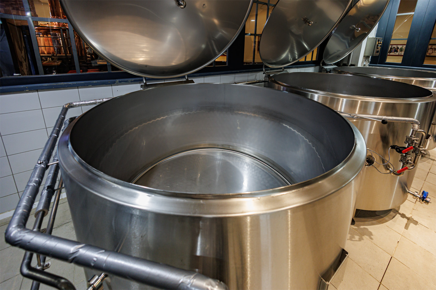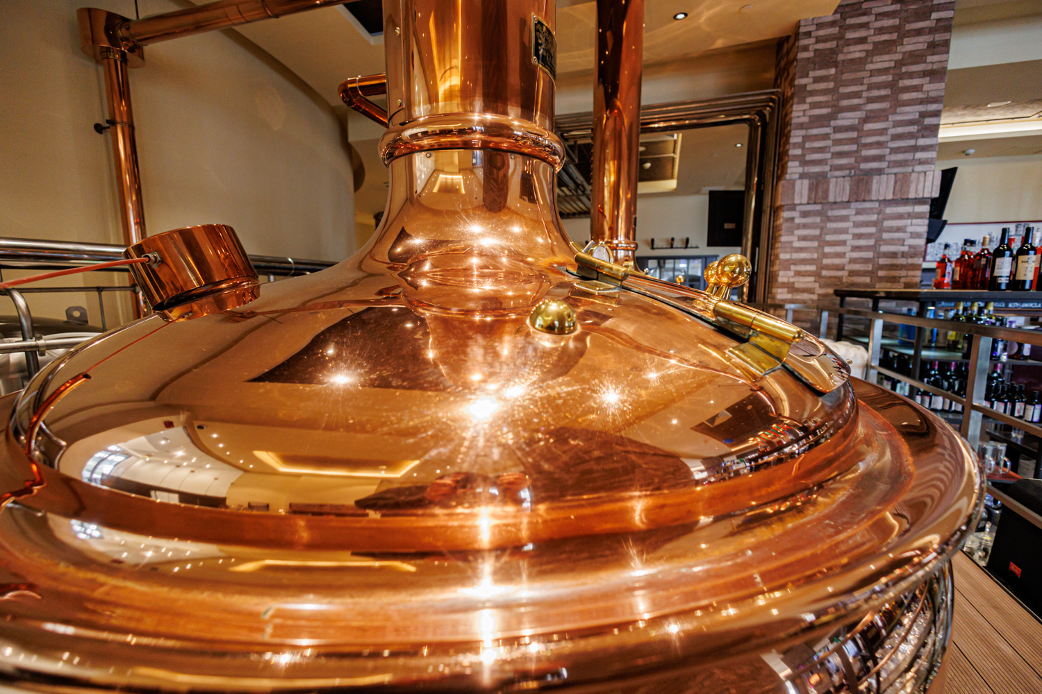 Совсем рядом с Maximilian's, на той же улице Труда (но дом 179) расположен ресторан-пивоварня еще одной сети - Paulaner brauhaus (в здании Radisson Blu Hotel). Тоже посетил не один такой Paulaner и тоже могу сказать что челябинский - один из лучших. Интерьер ресторана вполне типичный, в стиле баварских пивных, посреди большого зала, за стойкой, установлен варочный порядок пивоварни от компании Caspary, отделанный медью и начищенный до блеска. Удалось посмотреть не только варочник, Максим Сапожников, главный пивовар, провел экскурсию и по цеху брожения. Брожение проводится в открытых танках, что встретишь не так уж часто, дображивание в закрытых вертикальных емкостях.