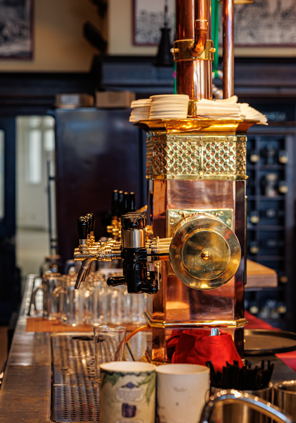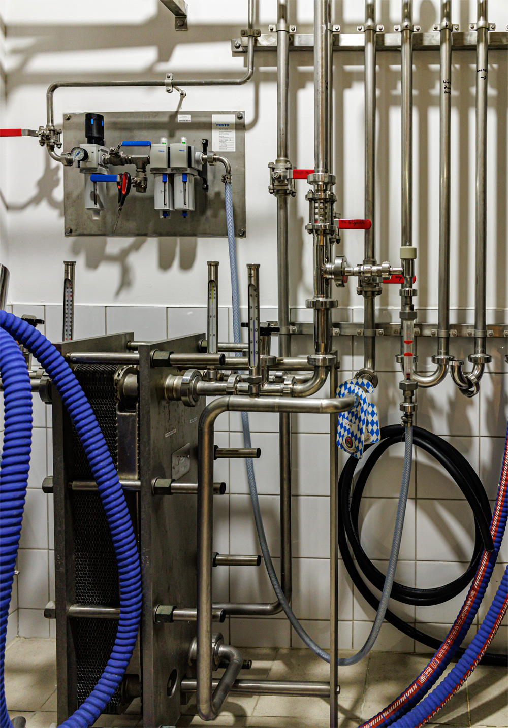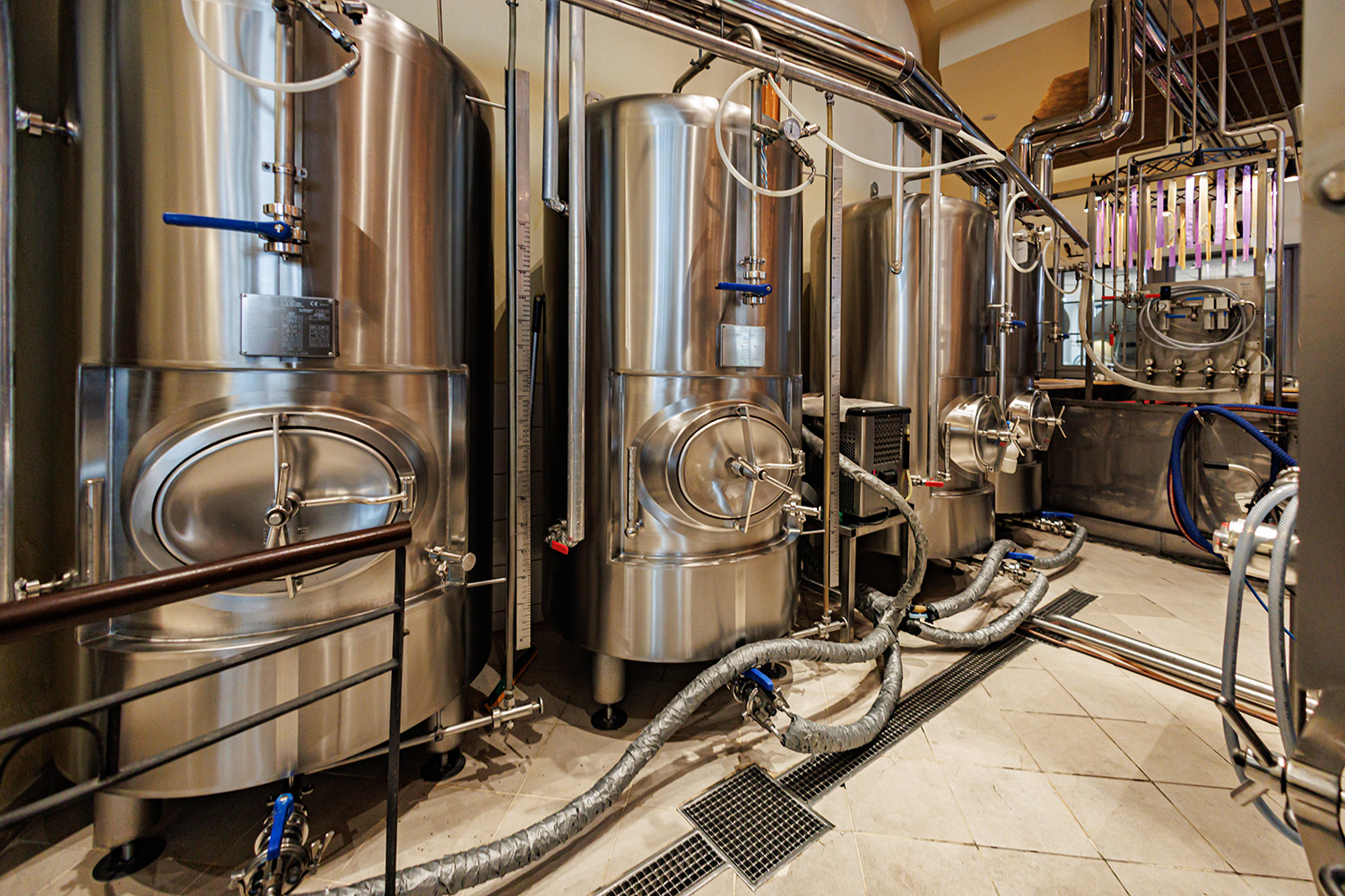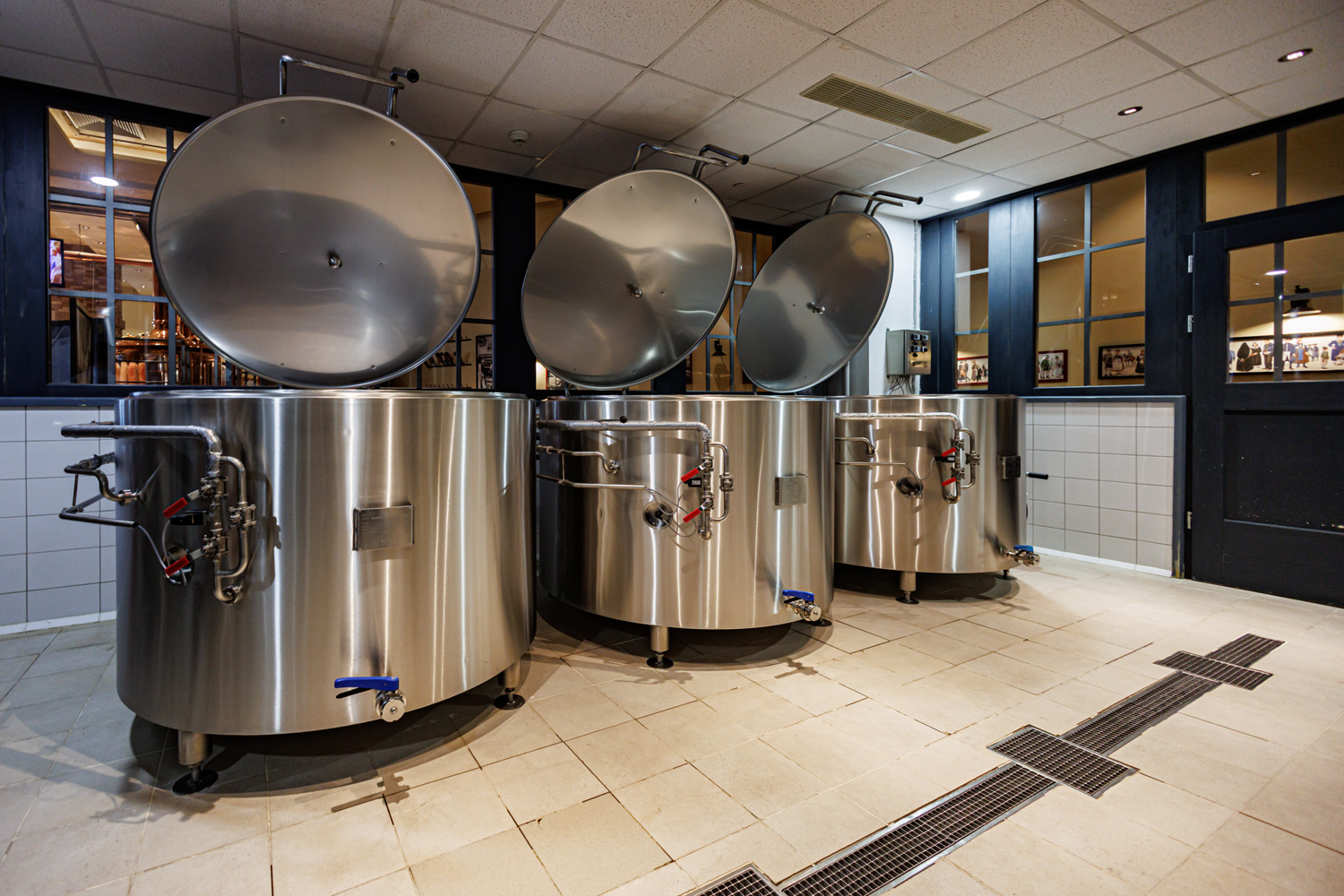Совсем рядом с Maximilian's, на той же улице Труда (но дом 179) расположен ресторан-пивоварня еще одной сети - Paulaner brauhaus (в здании Radisson Blu Hotel). Тоже посетил не один такой Paulaner и тоже могу сказать что челябинский - один из лучших. Интерьер ресторана вполне типичный, в стиле баварских пивных, посреди большого зала, за стойкой, установлен варочный порядок пивоварни от компании Caspary, отделанный медью и начищенный до блеска. Удалось посмотреть не только варочник, Максим Сапожников, главный пивовар, провел экскурсию и по цеху брожения. Брожение проводится в открытых танках, что встретишь не так уж часто, дображивание в закрытых вертикальных емкостях.