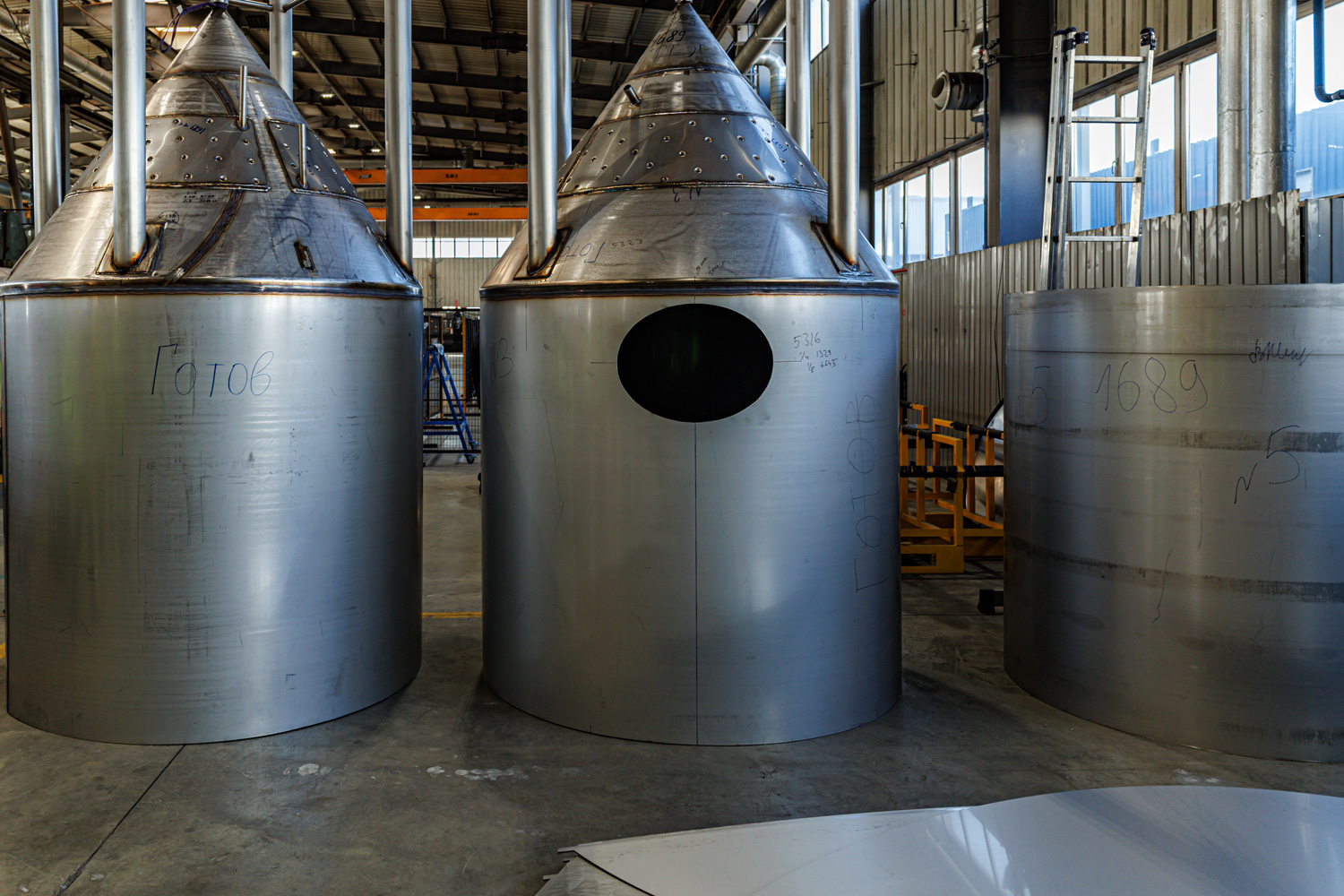 Южно-Уральский Форум Пивоваров проходит под эгидой завода емкостного оборудования "Номас" и во время его проведения все желающие могут посетить завод с экскурсией. Хотя я уже был на "Номасе" два раза, но съездил и в третий, тем более что каждый каждый раз в производстве находятся разное оборудование, потому и фотографии выходят немного разные. Завод занимается производством различных металлических емкостей, прежде всего это пивоваренное оборудование - цилиндро-конические танки брожения, варочные порядки, теперь выпускаются также и солодовни, но есть оборудование и для других отраслей - вроде молочной. В наличии современный парк обрабатывающих станков, применяются передовые самые технологии производства. В итоге - на выходе качественное оборудование, причем на заводе готовы подстроиться индивидуально под каждого заказчика.