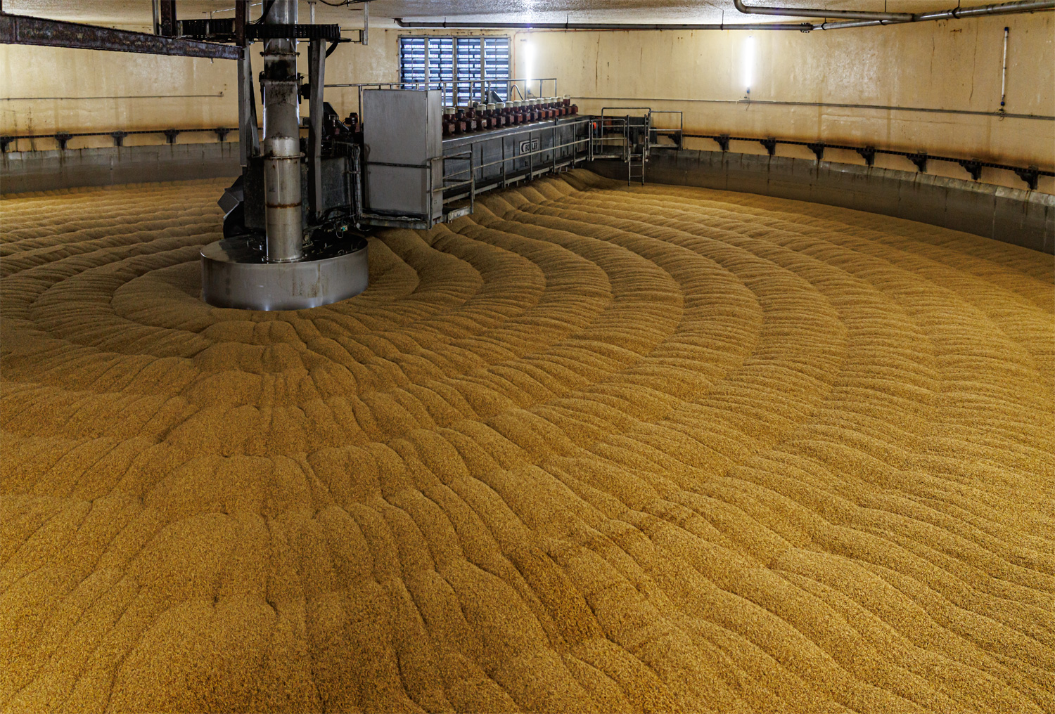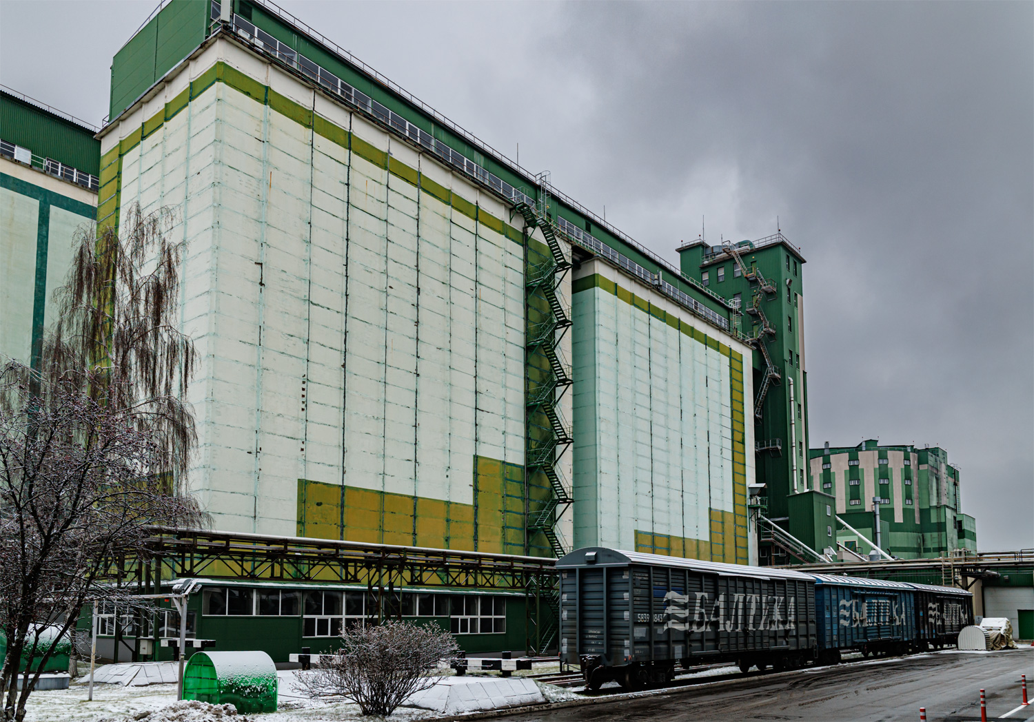 | Зернохранилища с зерном и солодом, справа - здание солодовни. | ||||||||||||||||||||||||||||||||