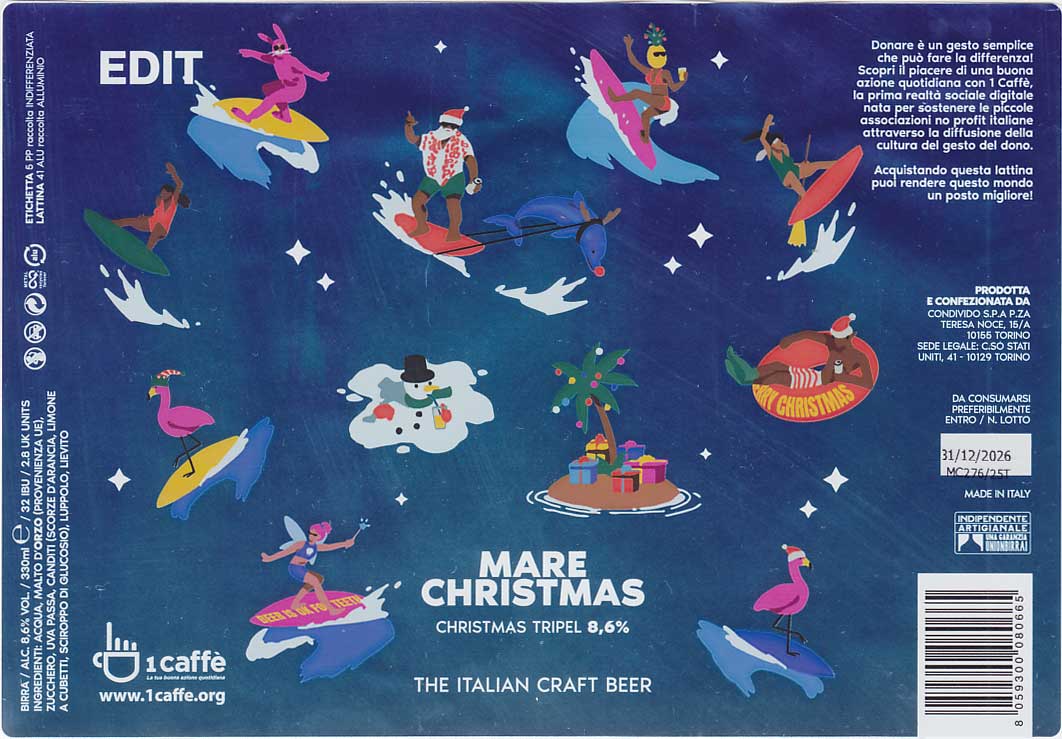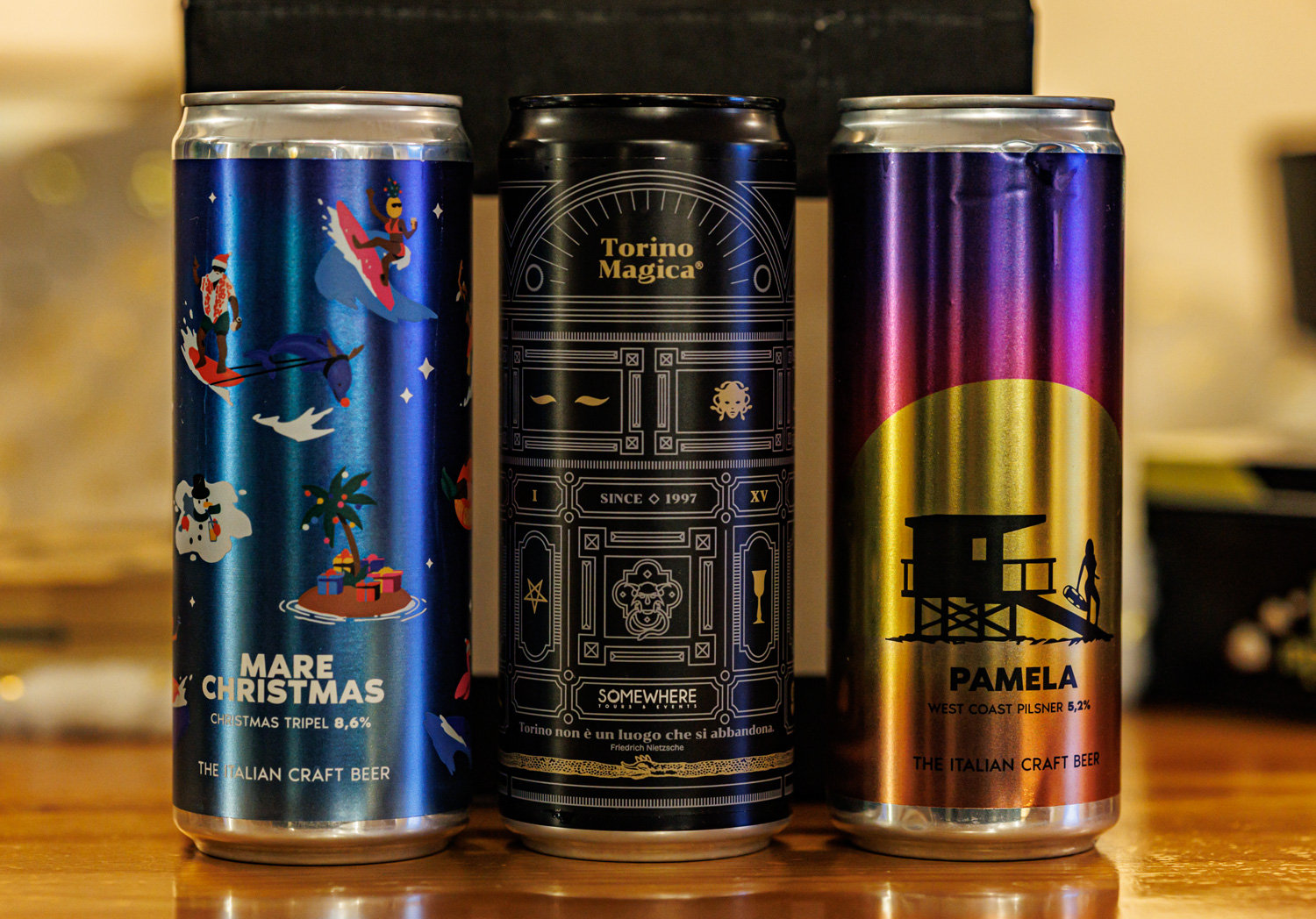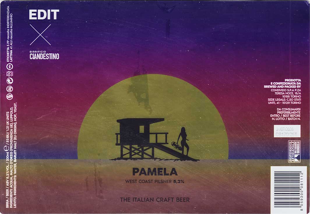 Edit Brewing, "Torino Magica" (Wheat Beer - Witbier / Blanche) - вкус мятный, фруктовый, но жидковатый и водянистый. "Pamela" (Pilsner - Other) - на самой банке стиль описан как West coast pilsner, хотя это явно IPL - в аромате и вкусе явный американский хмель - цитрусовые тона и прочие тропические фрукты. Чисто, горечь не сильная, но ощутимая. "Mare Christmas" (Belgian Tripel) - вкус мятный или может гвоздичный, в остальном фрукты, бананы, но характер именно бельгийский. Крепость скрыта.