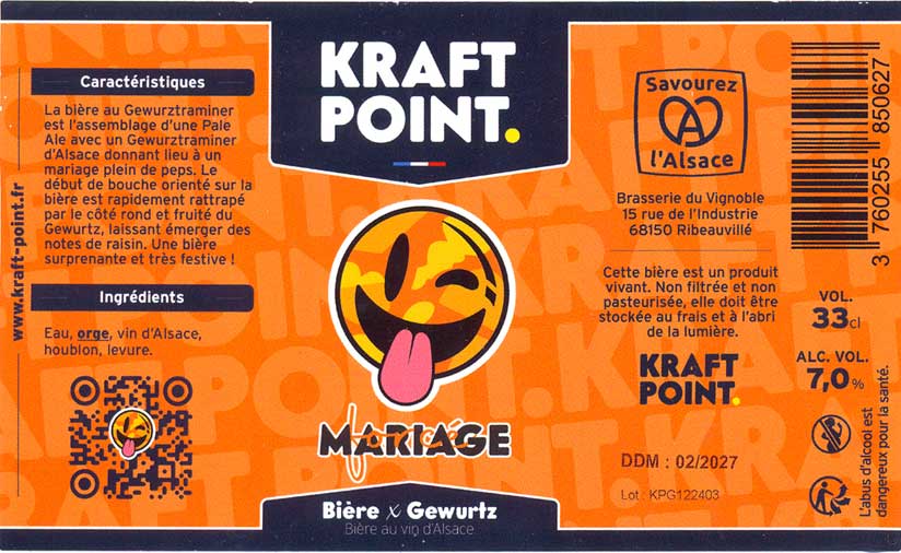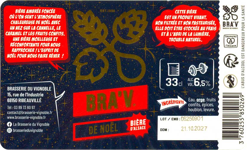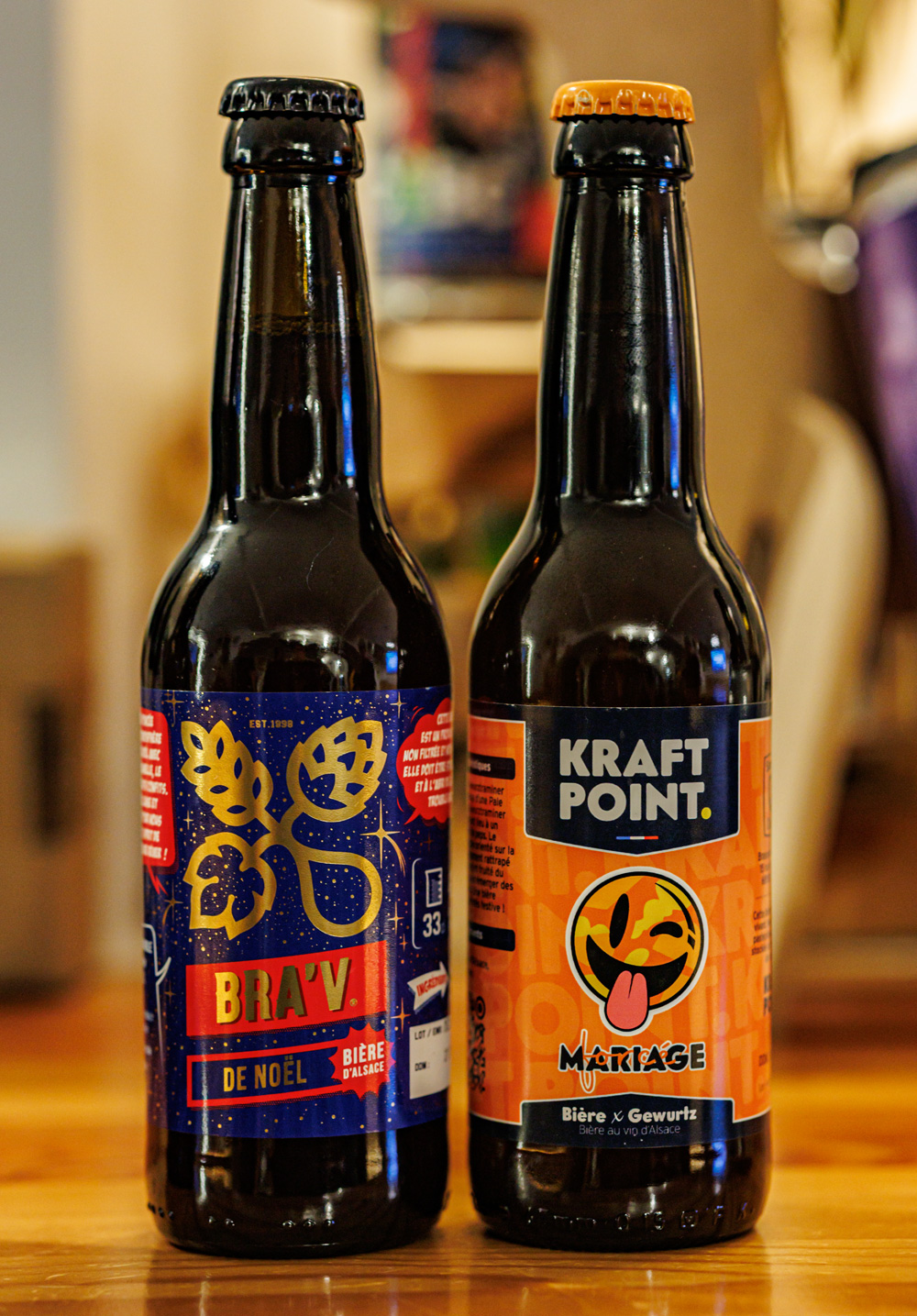 Bra'v - La Brasserie du Vignoble, "Bra'V de Noël" (Winter Ale) - типичное зимнее пиво - карамельные и темные солода и немного пряностей вроде корицы. Как Kraft Point Mulhouse, "Mariage Forcé" (Blonde / Golden Ale - Other) - по стилю это скорее грейп-эль, здесь добавлено вино (или виноградный сок), вкус потому блонда, но с тонами белого вина. Немного сладковато.
