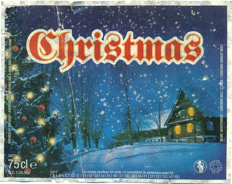 Бельгия, Leroy Breweries, "Christmas Leroy" (2012 год, Winter Ale) - уже заметно старение в цветочных тонах, но вкус в общем приятный. В целом чисто, не кисло, во вкусе фрукты и цветы, конфеты и чуть вина. Алкоголь скрыт.