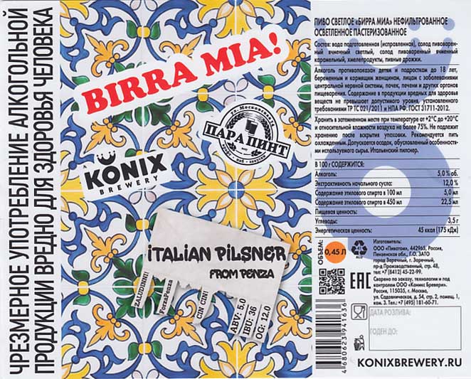 | Для Коникс бревери (также пиво заказывалось на Визит, Сердобский, RMB, Свои, Монплезир). | ||||