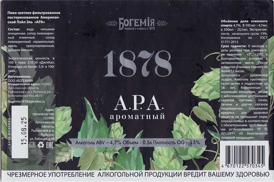 Крепость - 3,8 или 4,4 или 4,7% vol.