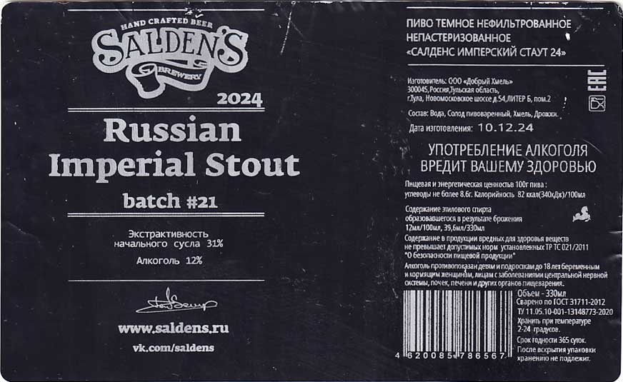 Салденс имперский стаут 24 (batch #21).